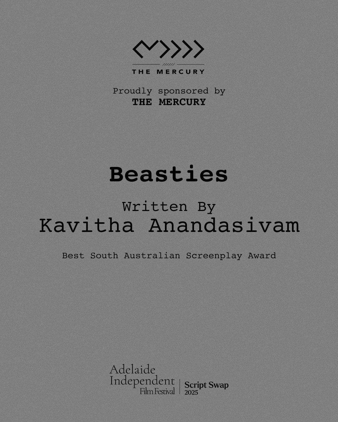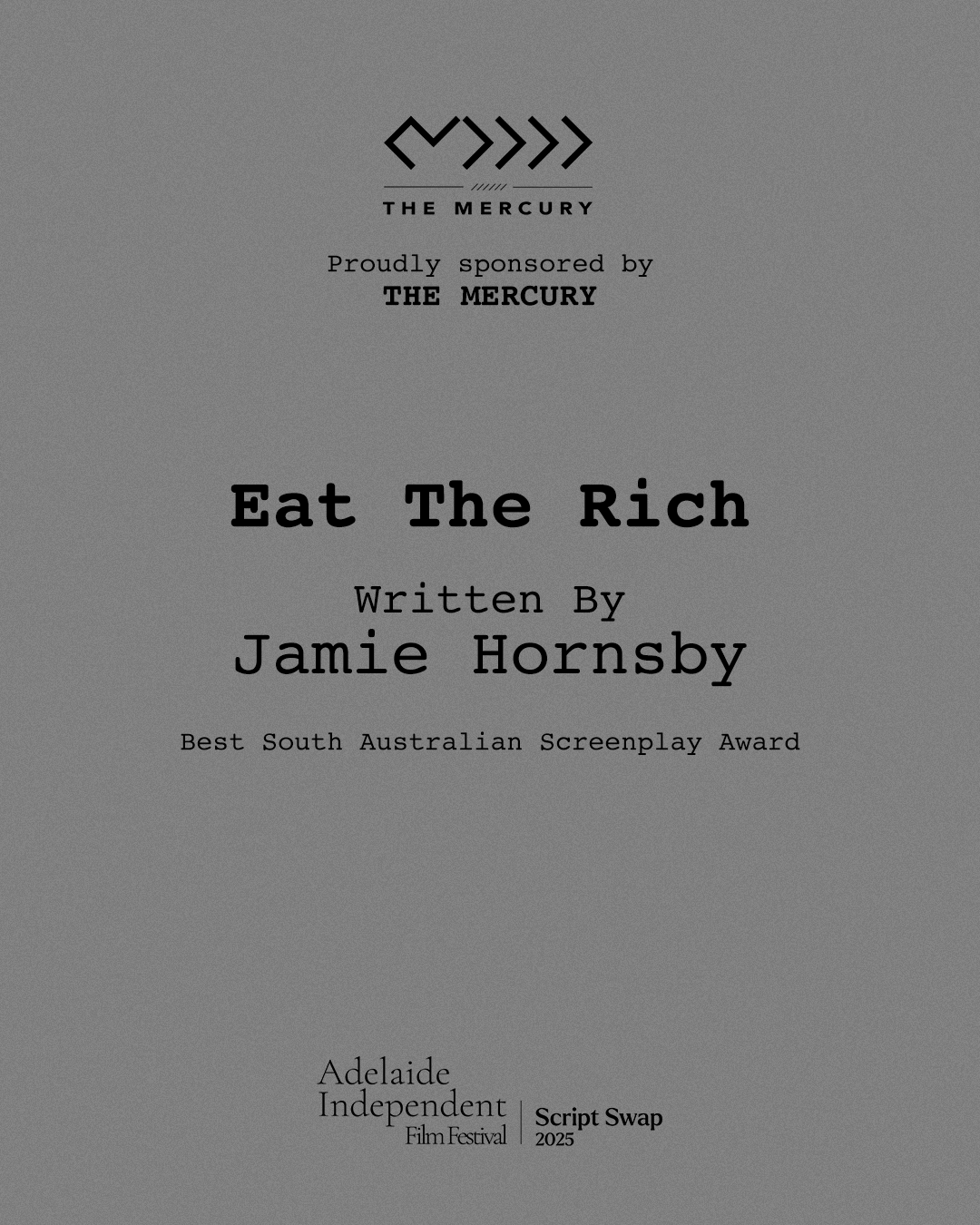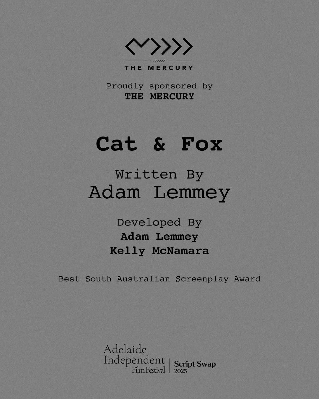 All South Australian screenplays entered will be considered for the Best South Australian Screenplay Award, proudly sponsored by The Mercury.